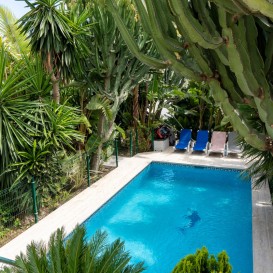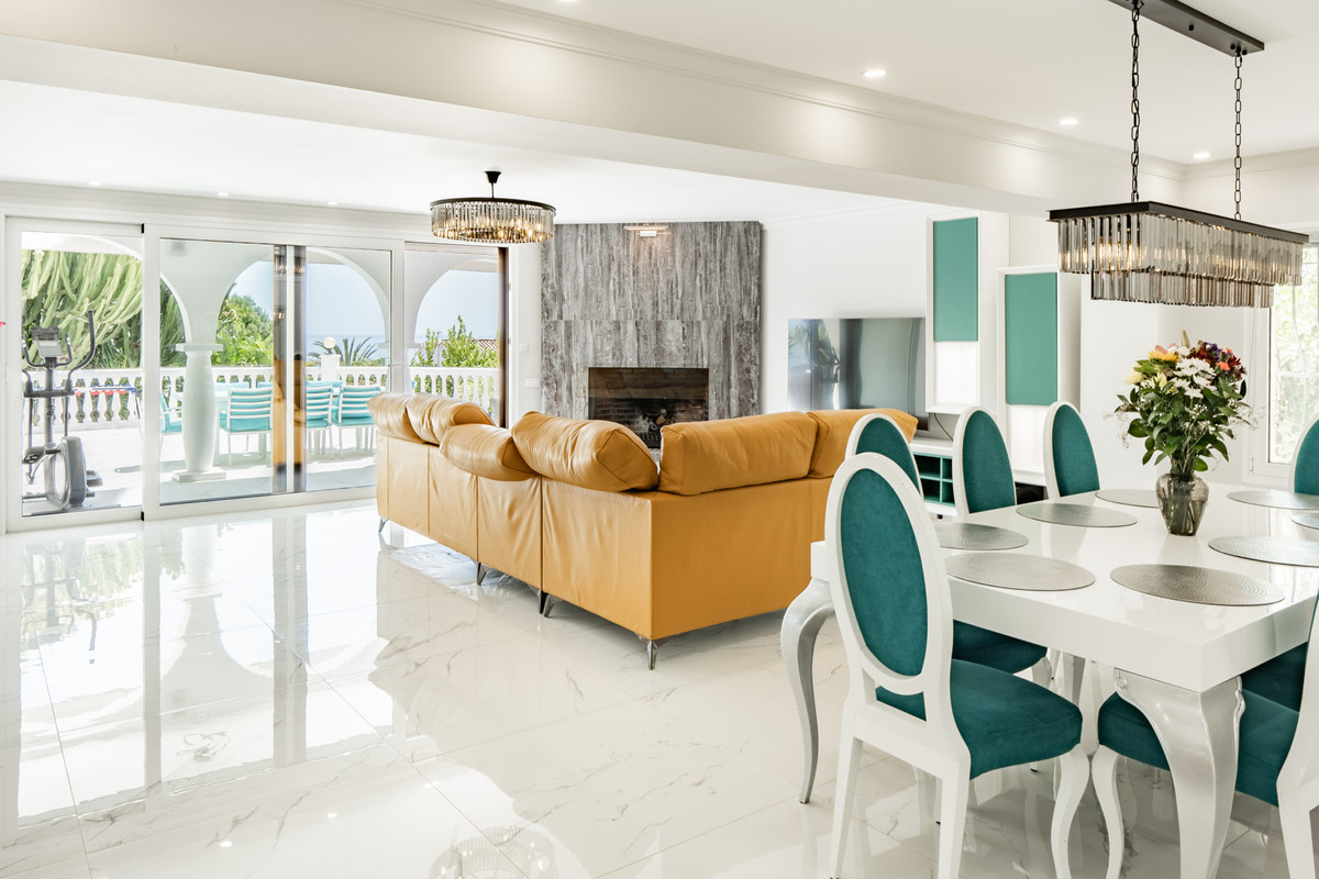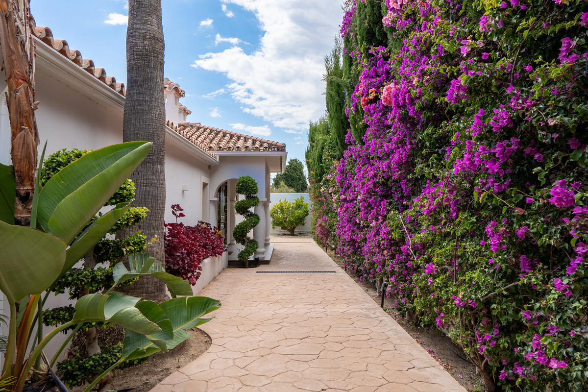 Ubicada en la soleada Marbella Este, esta villa de estilo andaluz completamente renovada, construida en 1968, combina el encanto tradicional andaluz con el lujo moderno. Todo el interior de la villa ha sido renovado, incluido todo el entramado eléctrico y de fontanería. Todas las renovaciones se completaron en 2020.A solo 2 minutos en coche de las playas vírgenes cercanas y del Club de playa Opium y a 5 minutos en coche de la vibrante avenida Ricardo Soriano en el centro de Marbella, la villa está situada para aquellos que buscan el mejor estilo de vida mediterráneo. Se asienta sobre una parcela de 1350 m2 con impresionantes vistas parciales al mar mediterráneo y a la montaña "La Concha", y tiene una superficie total construida de 420m2. El tamaño sustancial de la parcela también proporciona el tamaño suficiente para construir hasta dos villas de una sola planta o para agregar una planta adicional a la construcción actual.La casa principal de 248 m2 cuenta con 4 dormitorios con 2 baños en suite y 1 baño de visitas. La espaciosa sala de estar fluye a la perfección hacia una cocina moderna totalmente equipada, diseñada tanto para la funcionalidad como para el estilo. En el exterior, una piscina privada rodeada de exuberante vegetación y un amplio jardín ofrece un espacio tranquilo para relajarse y disfrutar del clima subtropical.