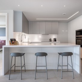 Mobilier : En option.Cuisine : Entièrement équipée.Jardin : Collectif.Sécurité : Complexe sécurisé, Stores électriques, Interphone, Système d'alarme, Surveillance 24 h / 24, Coffre-fort.Parking : Souterrain.Services publics : Electricité.Catégorie : Investissement, De luxe, Contemporain