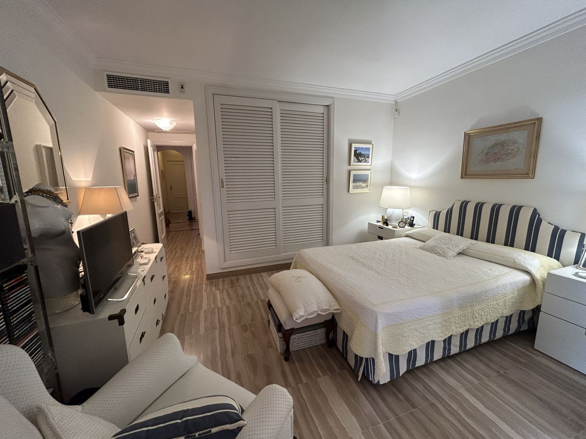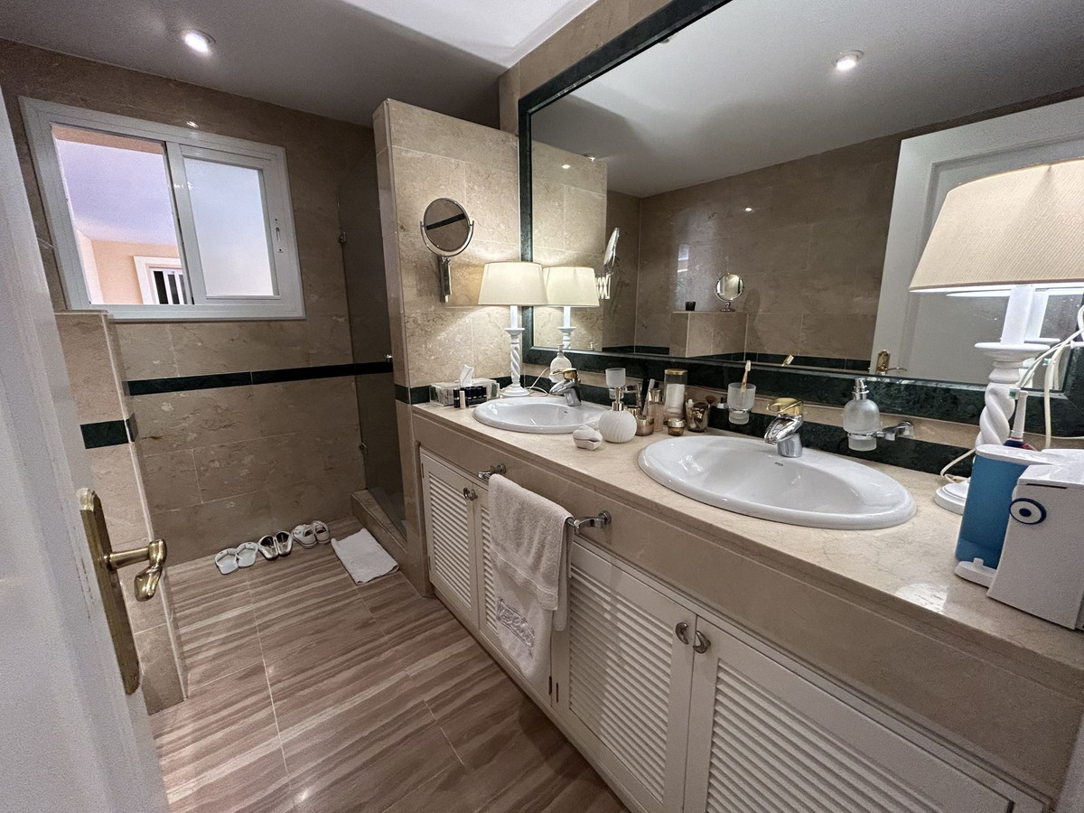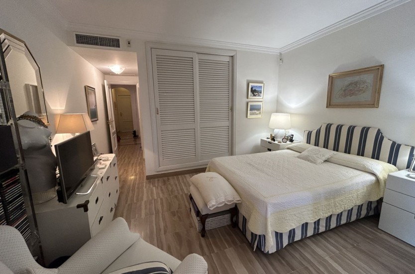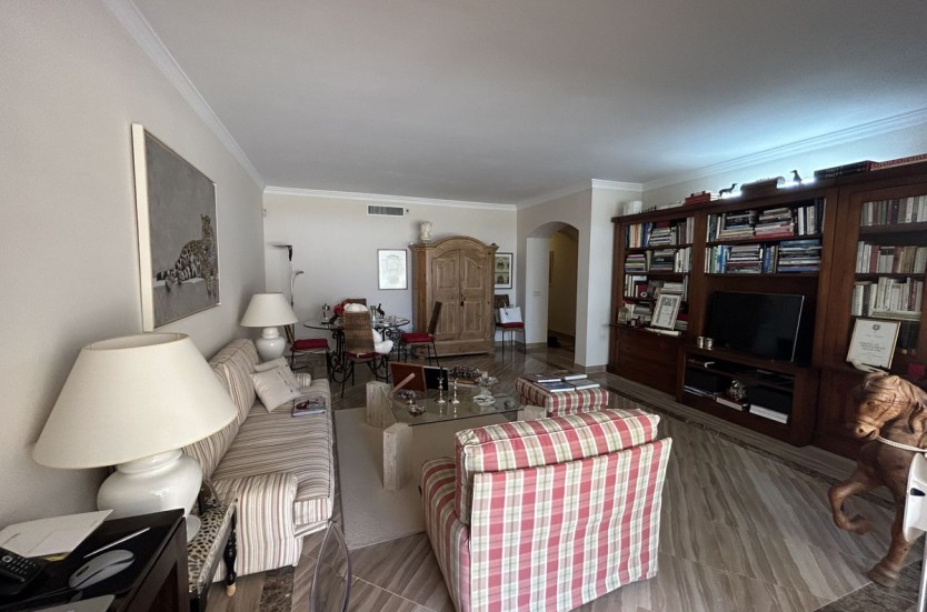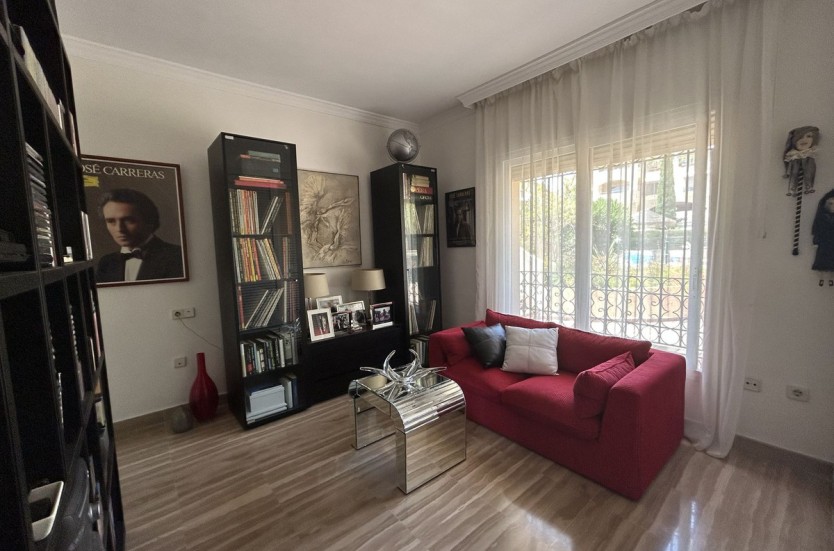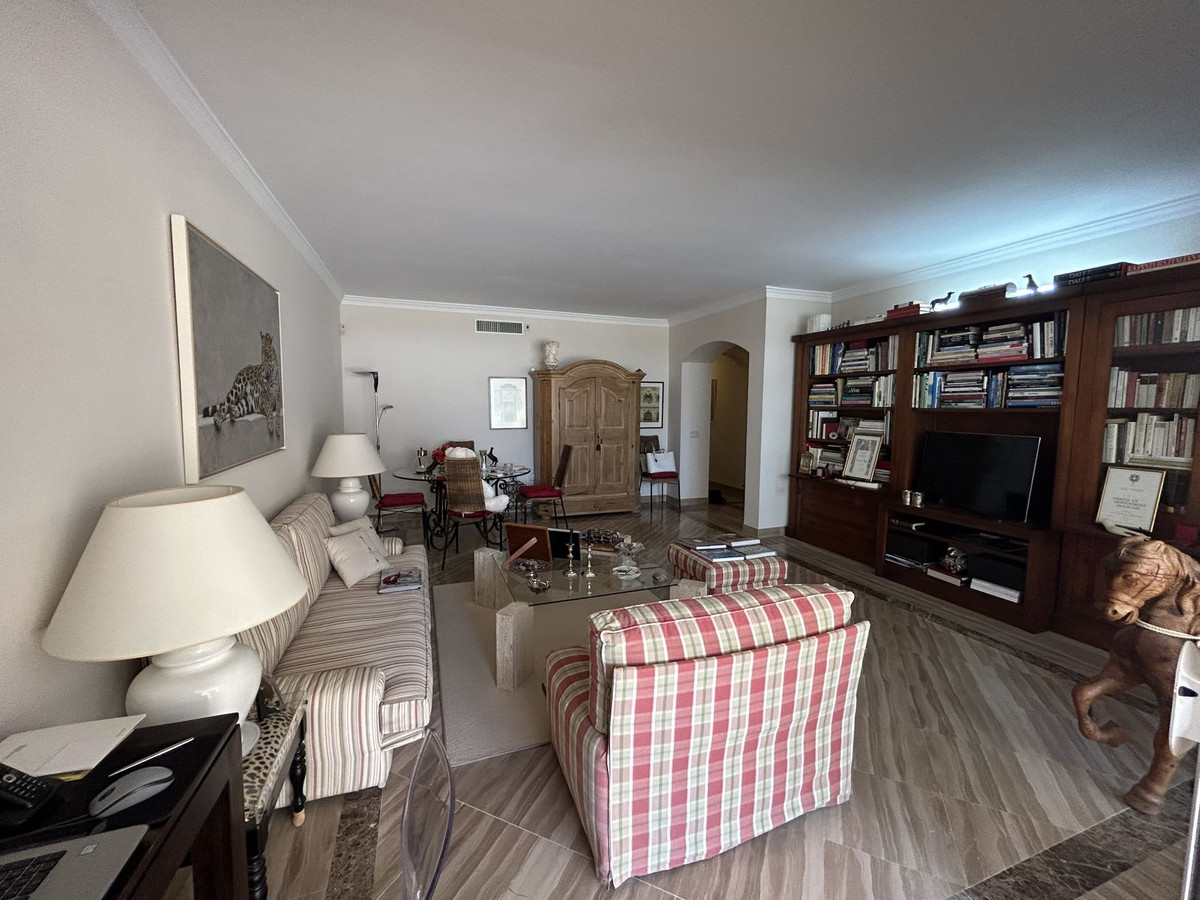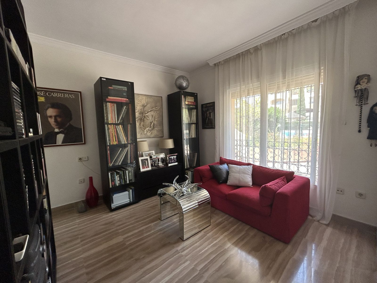 Lovely south facing apartment in Hacienda Elviria within walking distance to amenities. Situated on the 1st floor, it offers an ample living room that leads on to the large terrace that has been partly closed with glass curtains offering more living space in the winter months, a fully fitted kitchen, under floor heating in bathrooms, A/C hot & cold, two garage spaces and one store room.