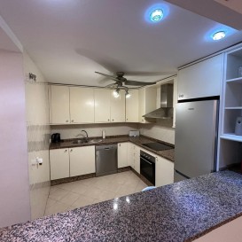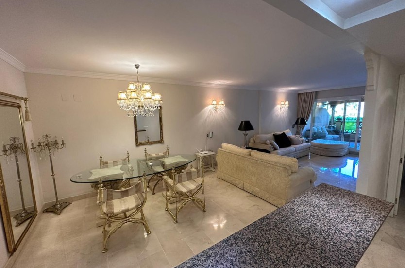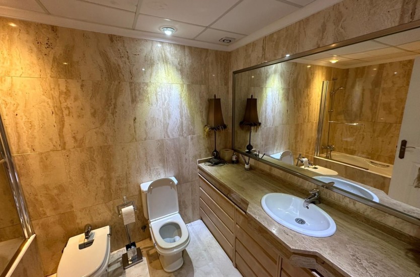 Step inside this luxurious 2-bedroom, 2-bathroom ground floor unit, and be greeted by the elegance of marble flooring throughout. The pristine marble not only adds a touch of sophistication but also helps keep the interior cool, making it ideal for the warm Mediterranean climate. The spacious living room is a true highlight of the apartment. Its generous size creates an inviting and open atmosphere, perfect for entertaining friends and family or simply enjoying quiet evenings at home. The large windows and sliding doors flood the room with natural light, enhancing the sense of space and providing seamless access to the delightful covered terrace. Both bedrooms are spacious and beautifully appointed, providing comfortable sanctuaries for rest and relaxation. The master bedroom features an en-suite bathroom, offering a private retreat within the apartment. The second bedroom is perfect for guests or family members and is conveniently located near the second bathroom. The apartment's west-facing orientation ensures that you can bask in the golden hues of the evening sun, enjoying stunning sunsets from the comfort of your covered terrace.