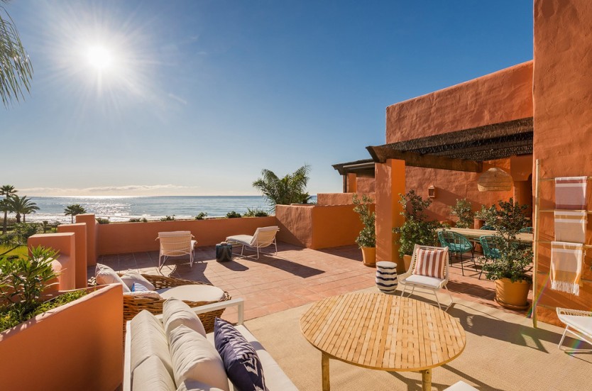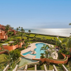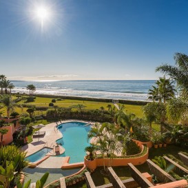 A frontline beach location in Marbella is a precious rarity, and when it involves a luxurious development set within over 10.000m2 of park-like gardens in a private spot right by the sea the result is nothing less than a true Marbella gem of rare quality. This complex offers all of this - a gated community of large, luxurious Mediterranean properties endowed with the latest comforts and surrounded by peace, privacy and nature within a short distance of Marbella.