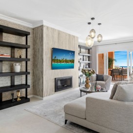 Fully renovated duplex penthouse in Los Belvederes. Top quality, done to the highest standards. South to west facing with panoramic views to the Mediterranean, the coast and the mountains. Fully private and quiet.Main floor: Entrance hallway, living area with a wood fireplace, dining area with an open plan fully fitted kitchen with Siemens and Bosch appliances and a laundry room. Direct access to the covered and uncovered terrace.