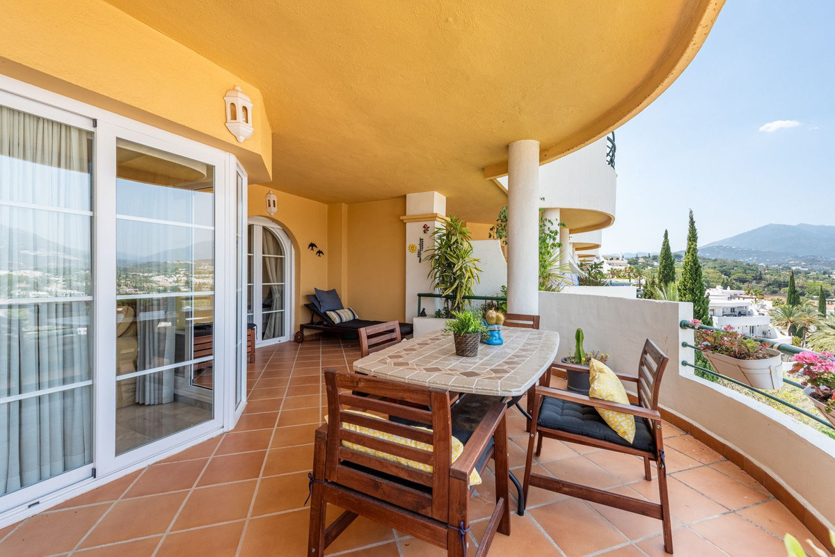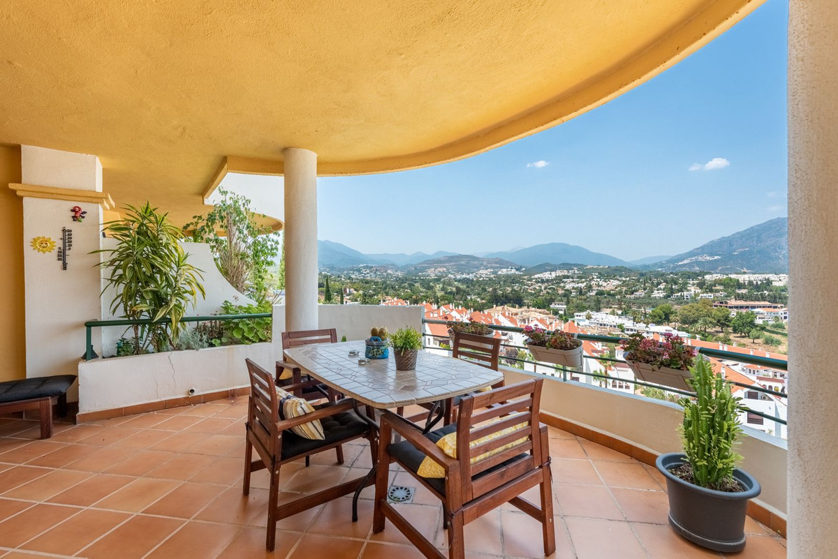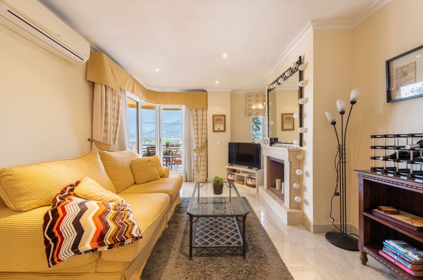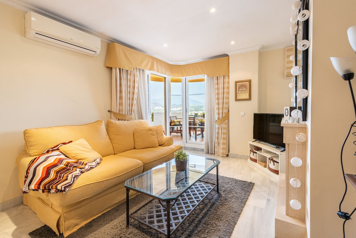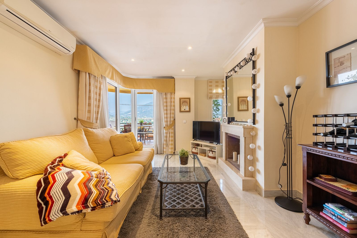 Apartment in a fantastic location in the heart of Nueva Andalucía within walking distance to Centro Plaza, Puerto Banús and the beach.The apartment consists of a spacious living room with dining area and fireplace which has direct access to a large lovely terrace with wonderful views of the valley, La Concha and the sea. A fully equipped kitchen with laundry room, two bedrooms and two bathrooms, one of which has its own smaller terrace with evening sun.