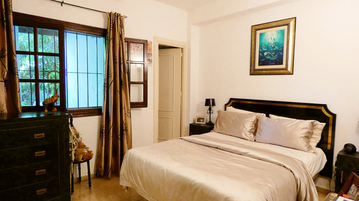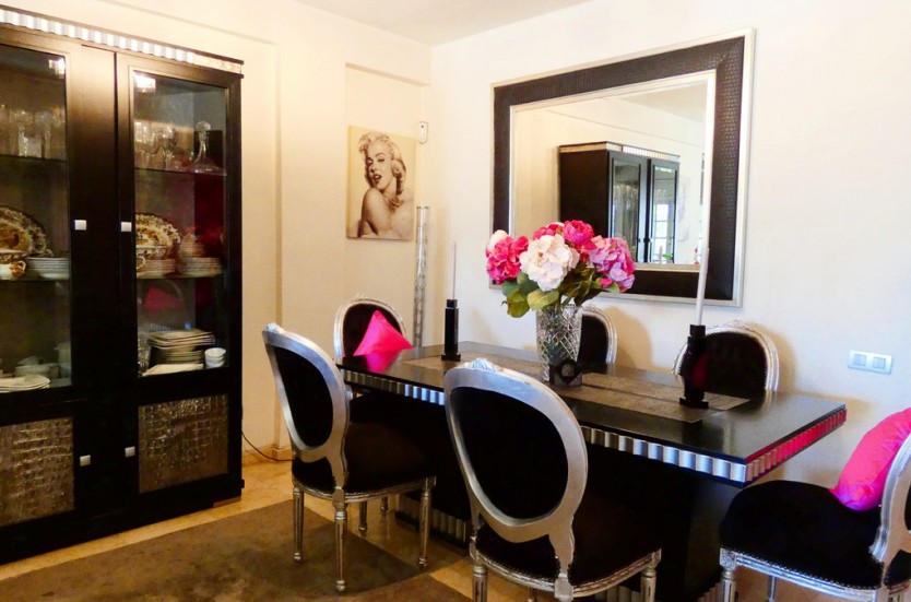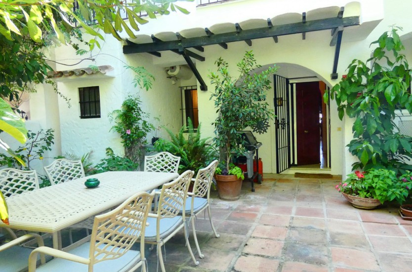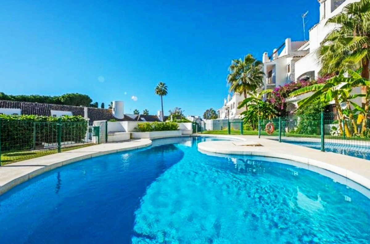 Located in a prime location, this ground floor 2-bedroom garden apartment in Villa Marina offers a truly desirable setting, just a few minutes' walk away from the sandy beaches of Puerto Banús and all essential amenities. The property boasts a spacious lounge/dining area with a charming real wood-burning fireplace, a separate fully equipped kitchen, and two generously sized private terraces.From the terrace, you can enjoy direct access to the pool and a delightful view of the garden. The apartment features a master bedroom with an en-suite shower room, as well as a guest bedroom with a separate bathroom.One of the standout features of this fantastic apartment is its potential for extension in both the kitchen and the master bathroom, allowing for customization and further enhancement.