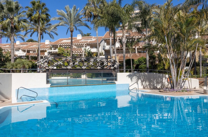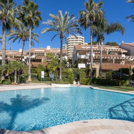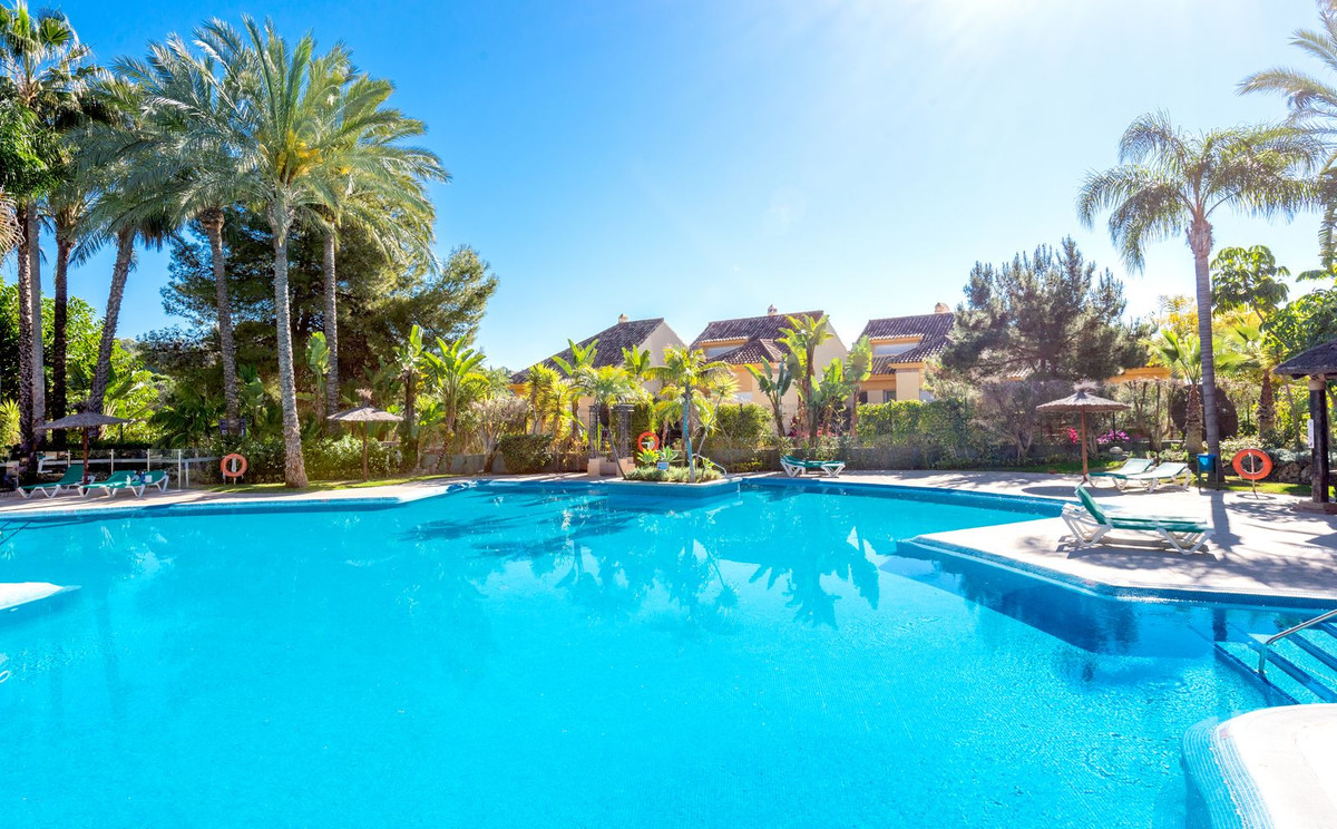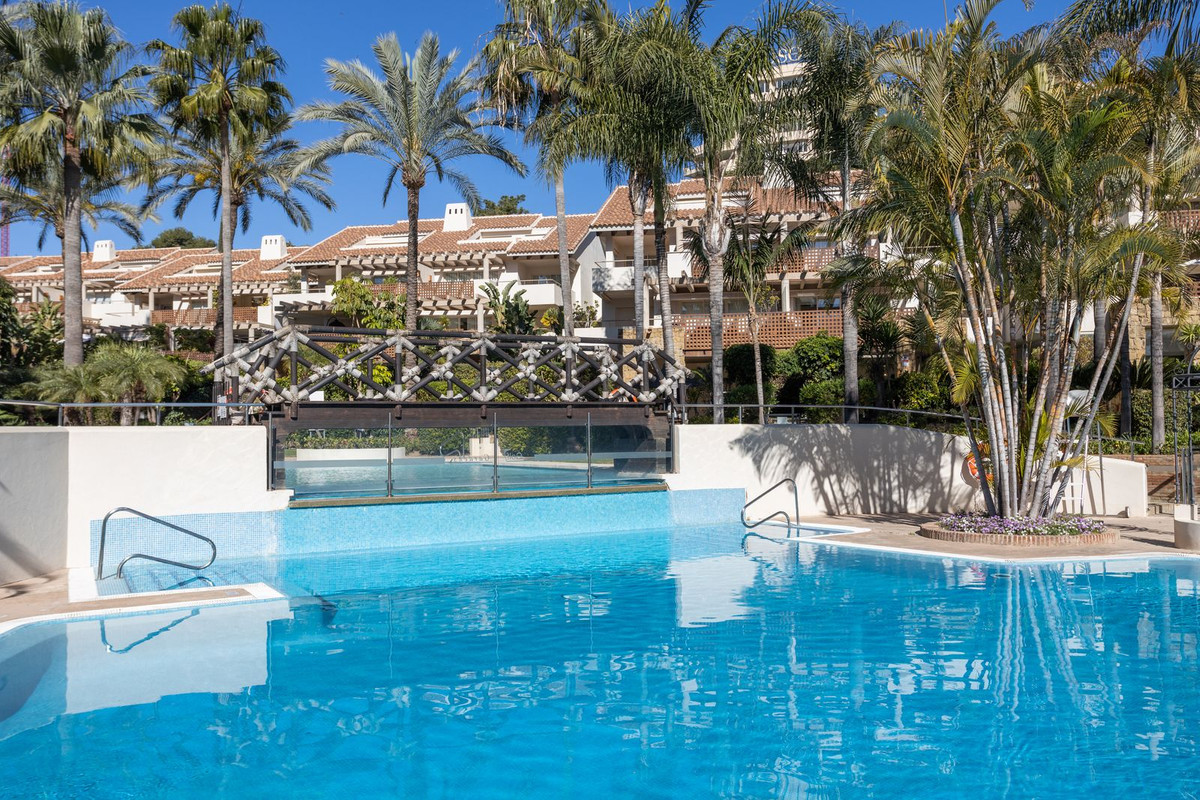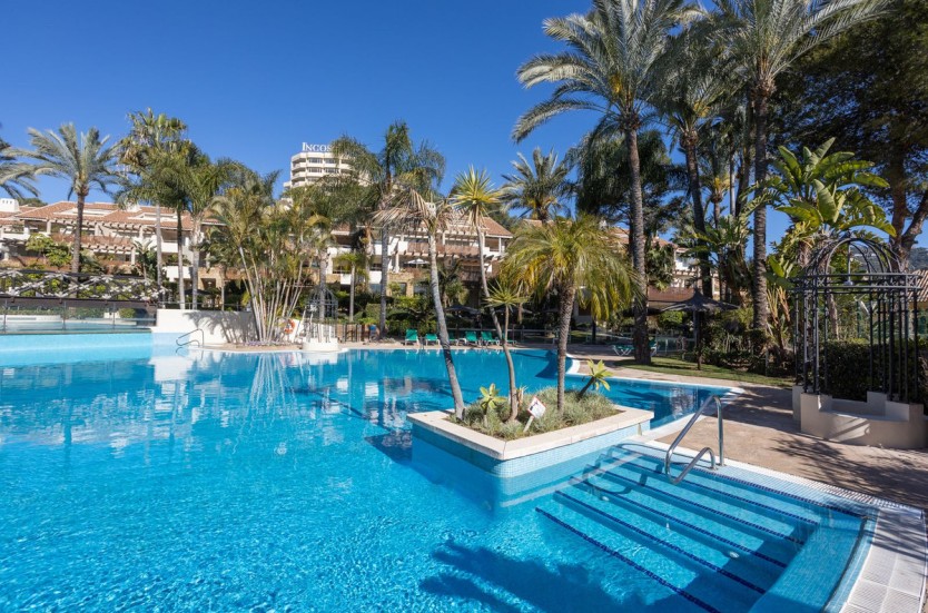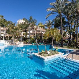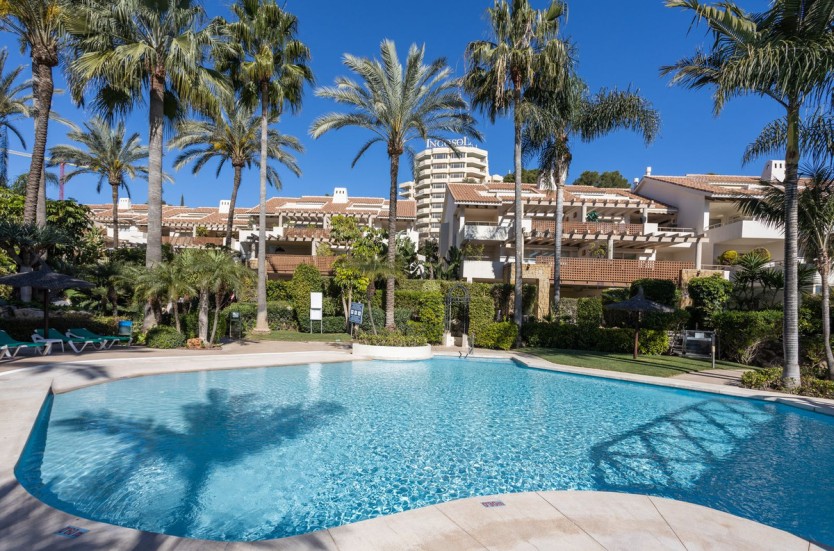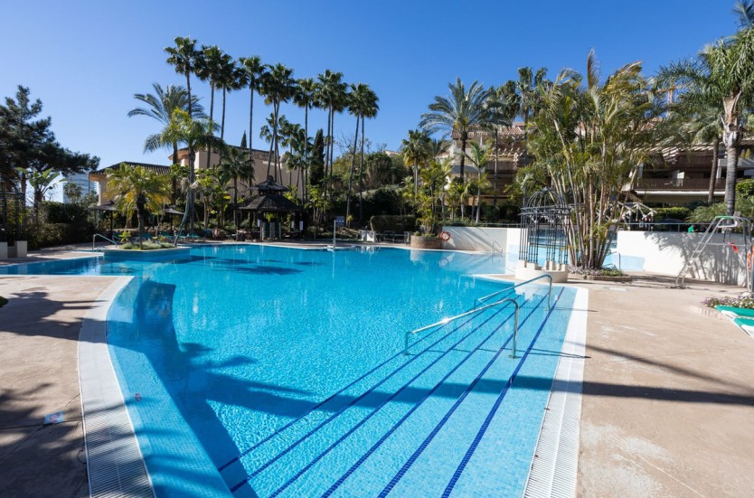 Best apartment for sale in GOLF GARDENS ... all in 1 level on the ground floor close to the fantastic and superb swimming pool. Perfect location. Situated on the famous Rio Real golf course, this spacious apartment offers peace and tranquility but is still close to the beach and the center of Marbella.Located in an exclusive community in Golf Rio Real, Marbella Convenient to golf and walking distance to the beach. Communal gardens and pool on the level of a 5-star hotel, plus a heated outdoor pool. Views over the exotic gardens (lots of palm trees) towards the pool. The flat has direct access via its private garden to the large swimming pool (super nice), ideal and great for children.Located on the ground floor (easy access) and accessed by lift from the garage, the accommodation comprises entrance hall with guest toilet, spacious lounge and dining room with access to a very nice, cozy and large south facing terrace at the front of the house. Kitchen fully equipped with led lights and good quality built-in appliances (Miele).