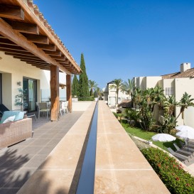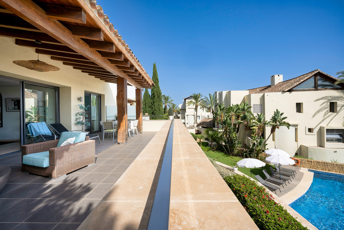 This exquisite 3-bedroom, 3-bathroom apartment offers a remarkable living experience in the highly desirable neighbourhood of Imara in Sierra Blanca. Spanning 196 square meters of built space, with 143 square meters of interior living area and a generous 53-square-meter terrace, this property combines modern comfort with ample space for both relaxation and entertainment. Built in 2004, this first-floor, south-facing unit provides an abundance of natural light throughout the day, enhancing the bright and airy ambiance of the interior spaces.The open-plan living and dining area forms the heart of the home, seamlessly integrating with the expansive terrace. This outdoor space serves as an ideal spot for al fresco dining, sunbathing, or simply enjoying the serene surroundings. The terrace's orientation ensures stunning views and plenty of sunlight, making it a perfect extension of the indoor living areas. The well-appointed kitchen features contemporary fittings and ample storage, catering to both everyday cooking and hosting gatherings.Each of the three spacious bedrooms boasts an en-suite bathroom, offering privacy and convenience for all residents. The master suite, in particular, stands out with its luxurious bathroom and direct access to the terrace, allowing for a seamless indoor-outdoor lifestyle. Additionally, there is a guest toilet, ensuring comfort for visitors.Residents of this community benefit from a range of communal amenities, including a sparkling swimming pool, meticulously maintained gardens, and a secure garage with one parking space. The lush communal garden provides a peaceful retreat and a perfect place for leisurely strolls or enjoying the outdoors within the safety of the gated community.Located just a short drive to the beach, the apartment offers the ultimate coastal living experience. The neighbourhood is renowned for its charming blend of traditional and modern architectural styles, creating a picturesque and inviting atmosphere.