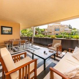 Exceptional Ground Floor Apartment in La Quinta del Virrey Introducing this stunning ground floor apartment located in the prestigious Lomas del Virrey area. This property has undergone a complete transformation in 2021, making it a true gem in the real estate market. Here are the key features:Spacious Open-Concept Living Area: Upon entering this residence, you'll be greeted by an incredibly spacious and well-lit living room, offering a generous and inviting space for relaxation and quality family time. This space seamlessly flows into a fully independent kitchen that has been cleverly combined with a terrace, now transformed into an elegantly designed dining area.Three Bedrooms and Four Bathrooms: The property boasts three bedrooms, each with its own open en-suite bathroom. The open layout of the bedrooms and bathrooms creates a sense of space and comfort, perfect for families or hosting guests.Expansive Covered Terrace: One of the most remarkable features of this home is its sizable covered terrace. This space is ideal for enjoying the outdoors year-round, whether for relaxation, al fresco dining, or simply taking in the views.Advanced Energy Efficiency: The property is equipped with a Panasonic brand aerothermal system, which optimizes annual electricity costs by €1400 and reduces water expenses to just €300 per year.