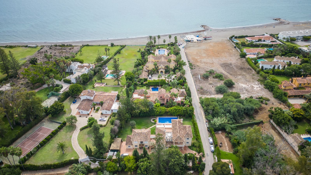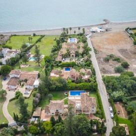 This luxurious villa in Guadalmina Baja, is situated just 50m from the beach. Being close to Puerto Banus with upscale amenities and exclusive shops but living in haven of tranquility provides residents with the convenience of nearby shopping, fine dining and golf courses. The villa spans over a plot of 2.200 m2 which encompasses the house, pool and a carport for 2 cars and 2 uncovered spaces. Impressive hall with guest toilet and salon, leading to the main living area with high ceiling, separate dining room, fully fitted and equipped kitchen.