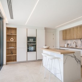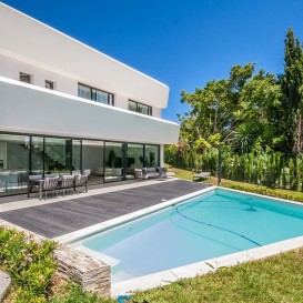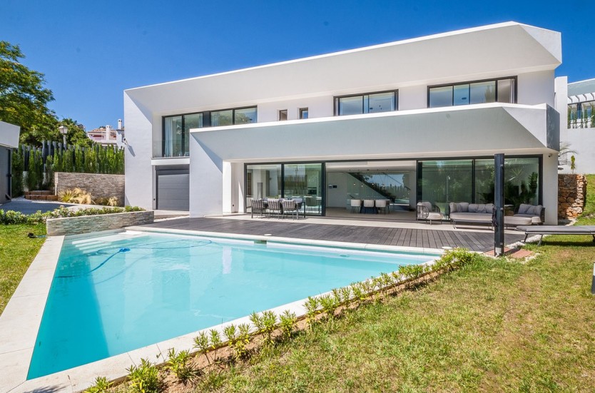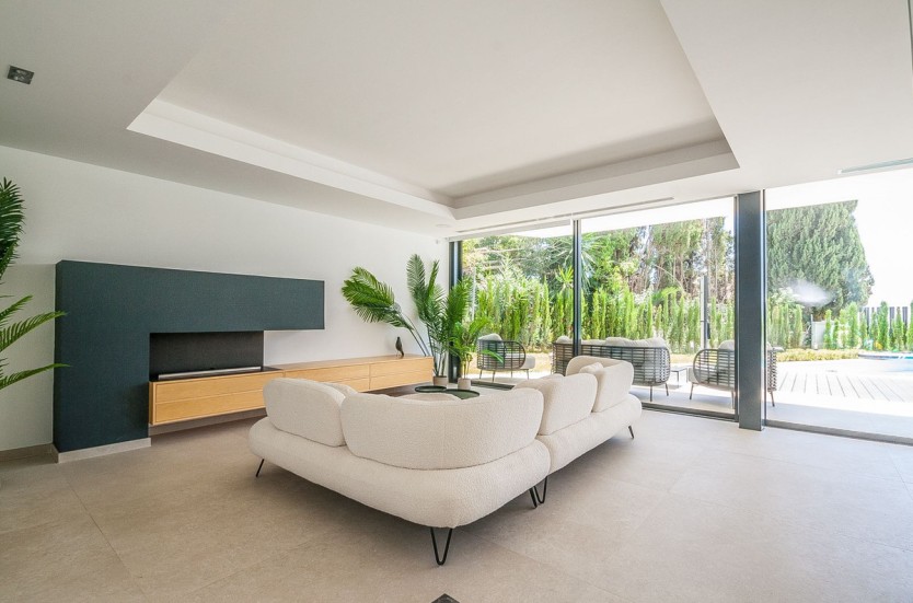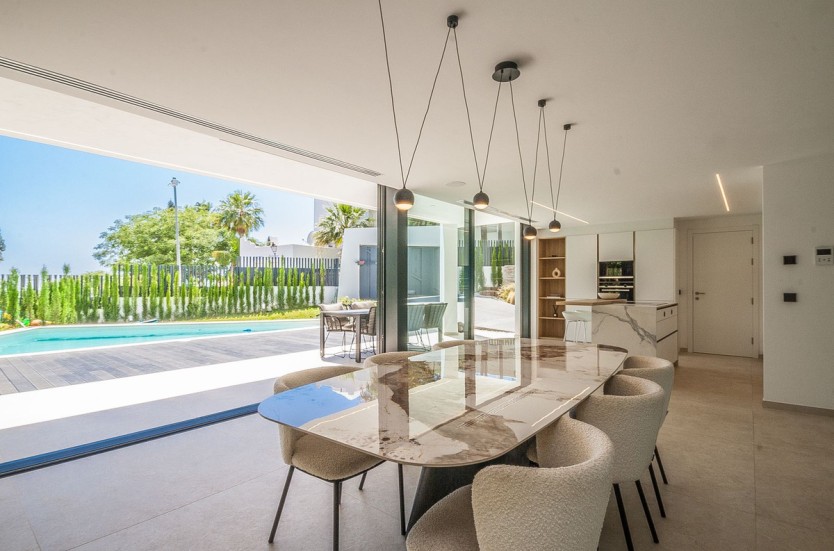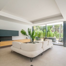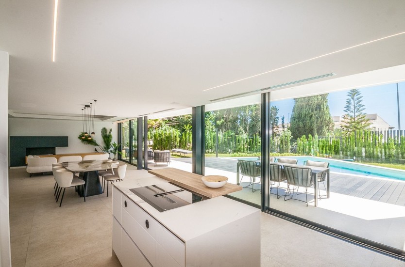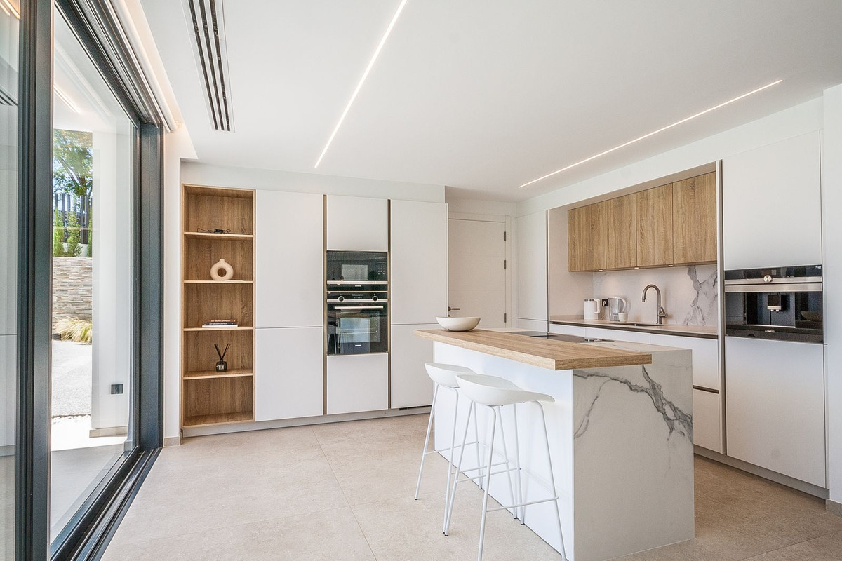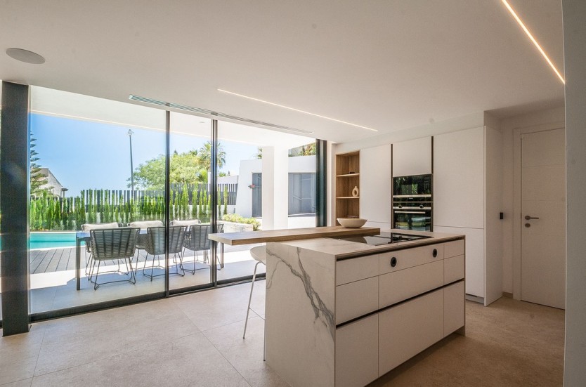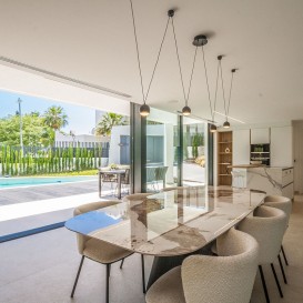 Recently built modern villa located in Marbella east in close proximity of local shops and restaurants and a 5 minute drive to the beach. The villa was completed in 2022 and is equipped with the lates technology in home domotica. The lower floor consists of a large open plan kitchen, dining area and lounge area, a guest toilet and a garage.