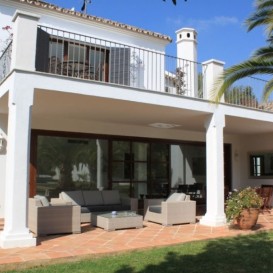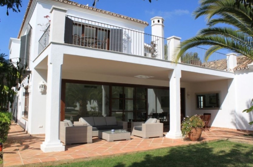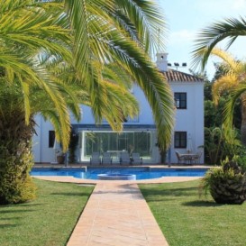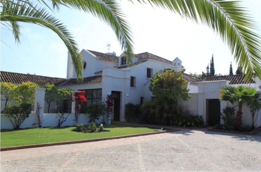 FULLY RENOVATED ANDALUSIAN STYLE VILLA IN A RESIENCIAL AREA NEAR THE SEAMagnificent family villa, Andalusian style, located Guadalmina baja just a few minutes walking to the beach.Due to the size of the plot, the house was built to offer spacious rooms with plenty of natural light and overlooks the magnificent mature garden, pool and separate guest house. It comprises on the ground floor : beautiful and spacious living room with fireplace, dining room for 8 people, country style kitchen with direct access to dining and service area , 2 bedrooms en-suite with beautiful high ceilings and lovely garden views.